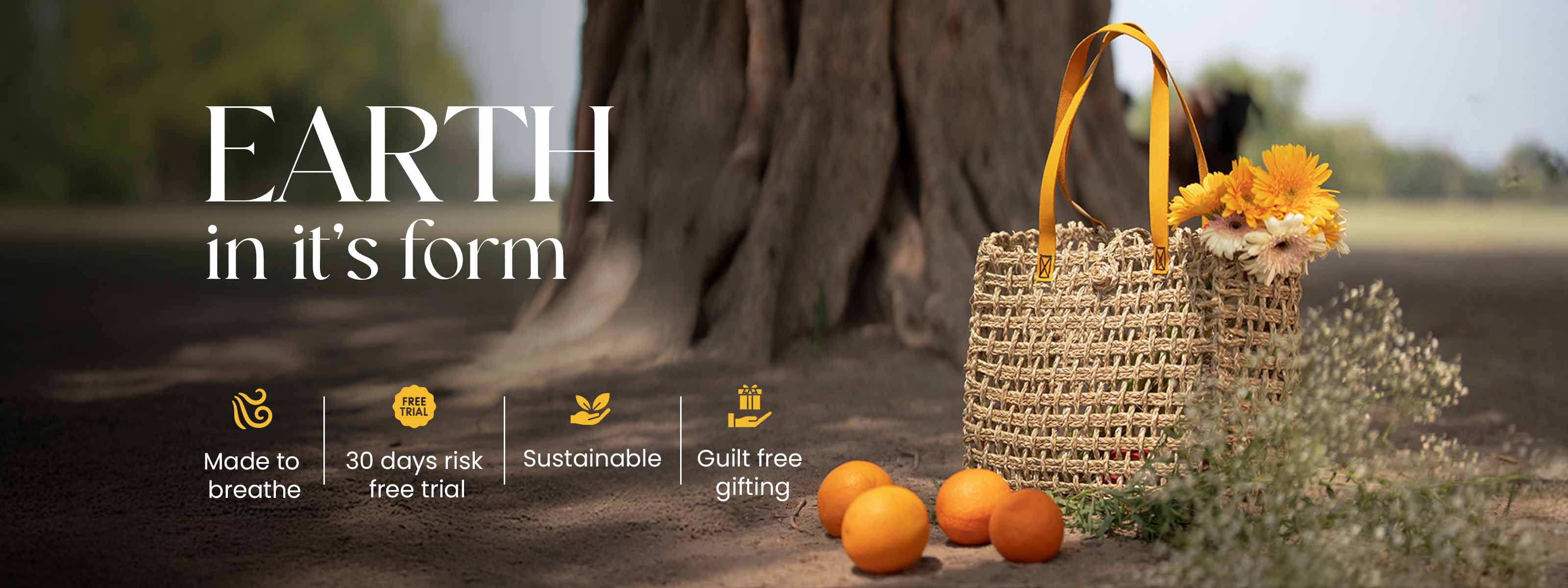Handmade Sabai Grass Mesh Bag Large And Small Combo set of 2