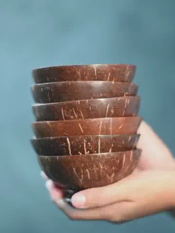 This set of 6 coconut shell bowls and spoons is handcrafted with precision and care. They are 4" wide and 2" high, food-safe, non-plastic, and perfect for serving rice, snacks, and other tableware. Bringing an organic element to your home and kitchen, these items are certified by Craftmark and a member of Fair-Trade Forum of India. All natural, environment-friendly, and made with coconut shell, this product supports rural communities, providing self-sustainment and advanced skills training. Coconut shells are purchased from a local market, creating an eco-friendly ecosystem that employs coconut pickers, sellers, and artisans. The craftgroup is based in East Medinapur, West Bengal.
