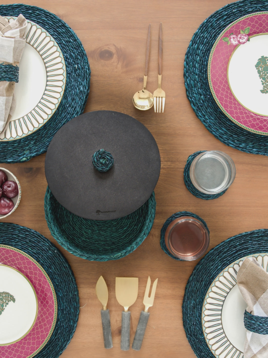 Add timeless elegance to your table with this [Black/Brown/Indigo/Natural] Sabai Grass Celebration Set, handwoven by rural Indian artisans. Eco-friendly, functional, and beautifully crafted, it’s ideal for festive hosting or conscious gifting.